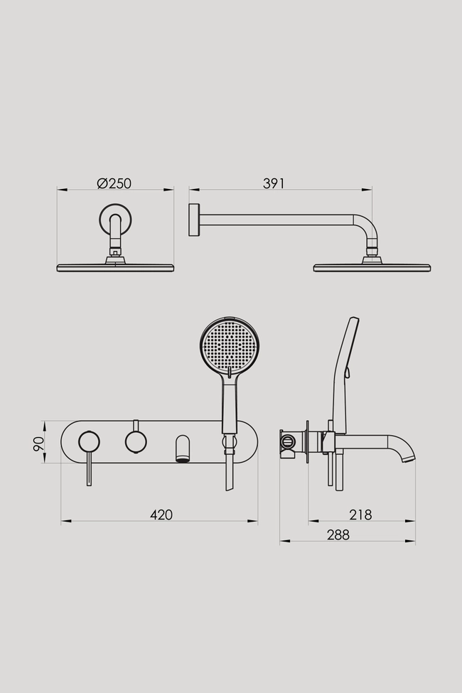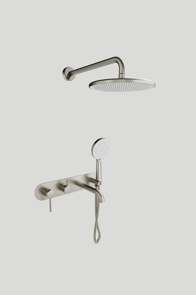 Miješalica podžbukna Voxort Allessia s tri izljeva nudi kompletno rješenje za uređenje tuš prostora. Sastoji se od elegantne podžbukne jedinice s prebacivačem, nadglavnog i ručnog tuša te izljevne cijevi, čime osigurava praktičnost, funkcionalnost i moderan izgled u kupaonici.