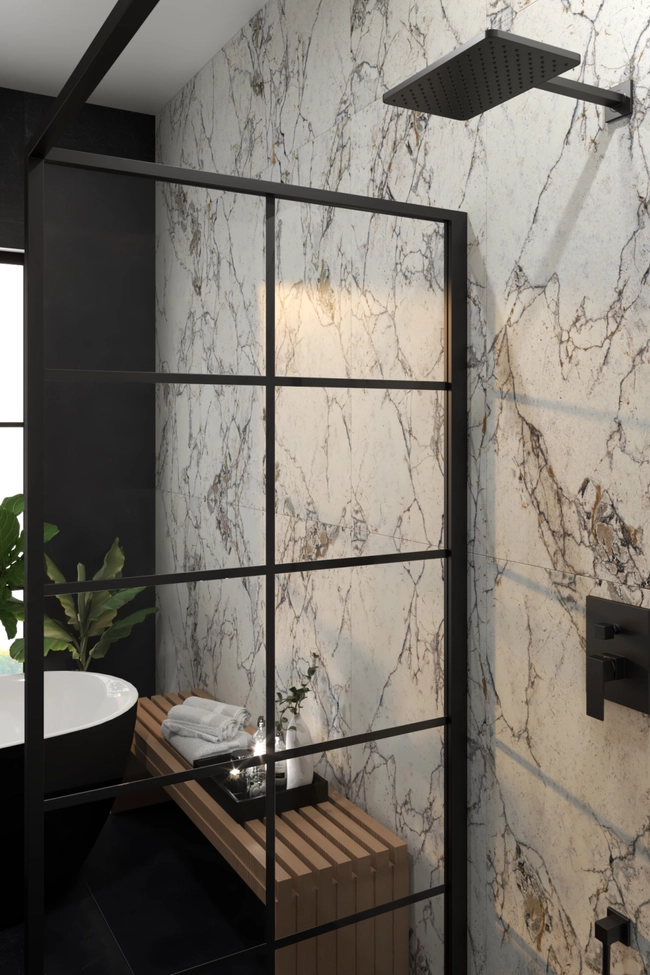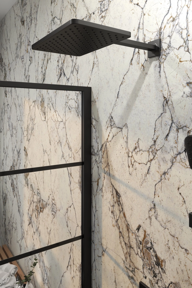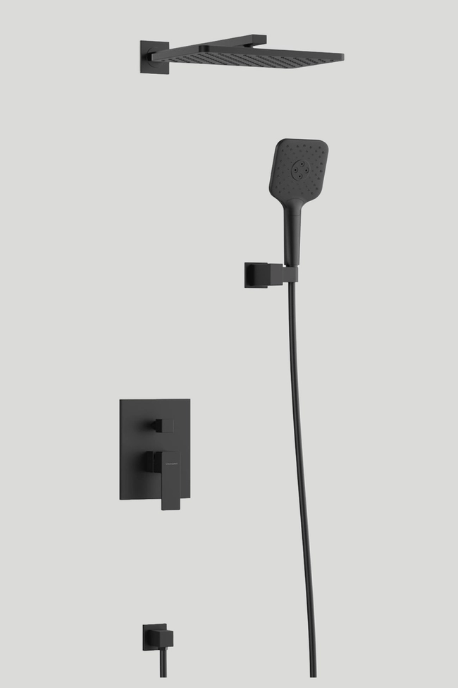 Voxort Perla Black ugradbeni tuš paket modernog je dizajna, oštrih linija i crne boje čime se uklapa u sve suvremeno i industrijski uređene kupaonice.